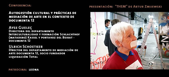 Presenta y modera : Ulrich Schoetker, Director de la Mediación de Arte de documenta 12 y socio fundador de Liquidación Total.